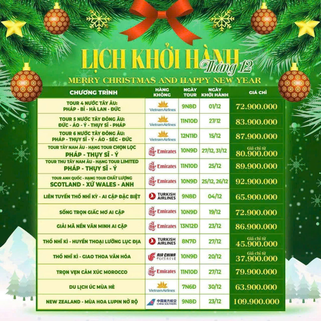 CHƯƠNG TRÌNH DU LỊCH TÂY ÂU ĐẶC BIỆT ĐỨC – HÀ LAN – BỈ – PHÁP – THUỴ SĨ – Ý