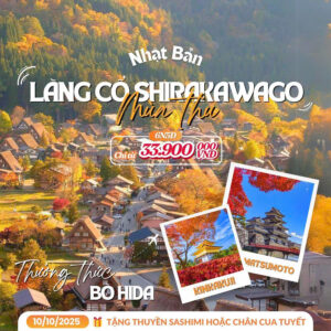Thời gian: 5 ngày 4 đêm (tính cả thời gian bay) – HK 5 sao: All Nippon Airways