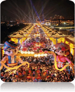 Quý khách có thể xem các tiết mục biểu diễn dân tộc, thưởng thức các món ăn vặt đặc sắc của Quảng Tây và các vùng miền khác như phở ốc cay Liễu Châu, bánh bao Thiên Tân, thịt nướng Mông Cổ, gà nướng Hàn Quốc, bánh bao Ấn Độ ….