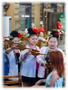 11h00: Ăn trưa tại nhà hàng Nam Ninh. Tại nhà hàng quý khách được thưởng thức các tiết mục văn nghệ, nhảy sạp và thưởng thức rót rượu của người Dân Tộc Choang nổi tiếng, rất đặc sắc và thú vị. Chắc chắn sẽ để lại ấn tượng khó quên cho quý đoàn.