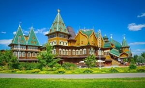 - Khu công viên cung điện cổ kính Kolomenskoye (bên n goài). Qúy khách tham quan một số thắng cảnh hoặc dạo bước, chụp ảnh với cảnh sắc nên thơ của công viên táo (Mùa xuân, hoa táo bừng lên màu trắng tinh khôi, đầu hè táo bắt đầu kết trái, mùa thu táo sai trĩu cành, lá bắt đầu đua sắc vàng rực). Đoàn có thể lưu giữ nhiều bức ảnh đẹp tại đây.