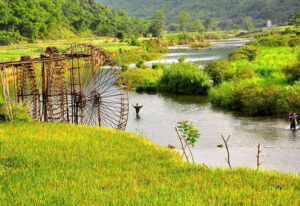 12:00 Đến Pù Luông quý khách dùng bữa trưa tại nhà hàng. Nơi đây khung cảnh bình dị, mộc mạc đến lạ thường với con suối nhỏ cùng những Cọn Nước, du khách sẽ được hòa nhập cuộc sống bình dị với các hoạt động như học dệt vải và thưởng thức các món ăn đặc sản tại đây.